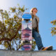 Painting of a Japanese landscape with a temple, a river and cherry blossoms. Customize it with your name.