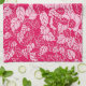 Japanese Leaf Print, Fuchsia and Light Pink Kitchen Towel