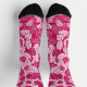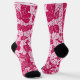 Socks in a Japanese kimono print - an all over pattern of stylized leaves, alternating positive and negative space, in deep fuchsia / raspberry pink and soft pastel pink