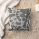 Vintage Japanese kimono print throw pillow - an all over pattern of stylized leaves, alternating positive and negative space, in deep graphite / charcoal grey / grey and light silver grey