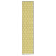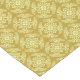 Table runner in a classic Japanese kimono pattern of stylized, four-way, medallions of leaves and flowers in light yellow on a deep mustard / golden yellow background