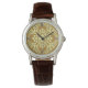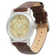 Watch in a classic Japanese kimono pattern of stylized, four-way, medallions of leaves and flowers in light yellow on a deep mustard / golden yellow background