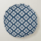 Japanese Navy Blue Ivory Floral Geometric Pattern Round Pillow