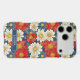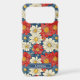 Customize this gorgeous red and cream on blue Japanese Chiyogami floral design iPhone 17 pro max case with your your name in a trendy modern CAP font in cream on blue. It's so beautiful!