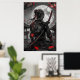 A beautiful illustration of a Japanese samurai woman with a katana and traditional tattoos, sitting under the full moon. Calm, cinematic composition inspired by Japanese culture and tattoo art. Perfect for posters and prints.