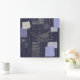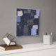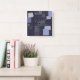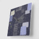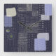 Dark blue square wall clock with traditional japanese sashiko printed design that resembles stiches and patches.