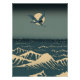 Swirling Ocean with a crane Bird flying overhead in a traditional oriental design style.