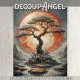 Elegant tissue paper featuring a delicate Japanese tree silhouetted against a soft grey background, warmed by a striking red sun. A perfect blend of minimalism and tradition, ideal for adding a serene, artistic touch to your creations.