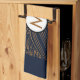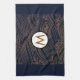 Japanese Waves Pattern in Dark Blue and Gold, oriental Japanese style accent tea towel kitchen towel. Personalize it with recipient's initial to make it a super special gift for yourself or your loved one.