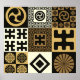 A set of japanese style seamless patterns, tribal and geometrical symbols, in a black and gold palette
