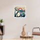 This stunning poster features a beautiful Japanese style drawing of a cat in shades of blue and white, set against the iconic Mount Fuji in the background. The art is full of atmosphere with a mix of blue, red, and white colours in the foreground. This would make a perfect birthday gift for any cat lover or anyone who appreciates Japanese art.