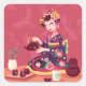 Illustration of the Japanese tea ceremony in pink tones with a crane.