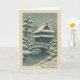 A gentle Christmas temple design with snow drifting over a still landscape.