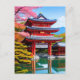 Trees and nature surround the Japanese temple and reflects off the nearby water art.