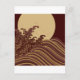 Japanese Traditional Wave and Moon Pattern Postcard
