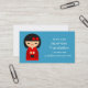 A stylish cute modern business card suitable for a freelance Japanese language translator and interpreter. This cute Kokeshi doll design can be used for any language related business and can be customised with your own personal details and qualifications. It features a design of traditional kokeshi Japanese dolls in cute modern style.