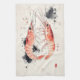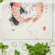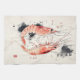 Japanese Watercolor Shrimp Art with Calligraphy Kitchen Towel