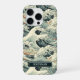 Make a statement with this iphone 16 pro phone case that features rolling Japanese waves in multiple shades of teal blue and splashes of earth tones. It's modern yet traditional. The pattern represents surges of good luck, peace, and eternal resilience. It becomes uniquely yours with your name in a CAP font in white on dark teal.