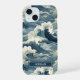 Make a statement with this iphone 15 phone case that features rolling Japanese waves in multiple shades of teal blue. It's modern yet traditional. The pattern represents surges of good luck, peace, and eternal resilience. It becomes uniquely yours with your name in a CAP font in white on dark teal.