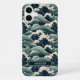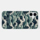 Make a statement with this iphone 16 plus phone case that features rolling Japanese waves in multiple shades of teal blue. It's modern yet traditional. The pattern represents surges of good luck, peace, and eternal resilience. It becomes uniquely yours with your name in a CAP font in white on dark teal.