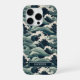 Make a statement with this iphone 16 pro phone case that features rolling Japanese waves in multiple shades of teal blue. It's modern yet traditional. The pattern represents surges of good luck, peace, and eternal resilience. It becomes uniquely yours with your name in a CAP font in white on dark teal.