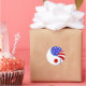 JAPAN USA YINYANG autocollant d'appel avec les drapeaux du Japon et des Etats-Unis inclus dans le design yinyang et l'aide Japon écrit en caractères inspirés par les Japonais écrire cet autocollant a été conçu dans le cadre de l'appel Zazzle pour aider les victimes du tremblement de terre japonais et du tsunami