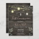 Pink script typography. Faux wood texture background, jar lights, rustic country design. First Communion celebration budget invitations. You can add photos to the back or additional text if needed.
