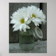 A poster featuring a photo of a jar of daisies with a background of rustic barnwood.