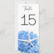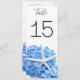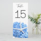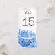 Grand jardin balnéaire bleu hydrangée carte numéro de table. Les cartes recto verso de 4 x 9 pouces ont du texte noir et de grandes fleurs bleues avec un design étoilé. Modifiez facilement le numéro de chaque carte et il apparaîtra de chaque côté. De belles cartes hautes décoreront élégamment les tables de réception et aideront les clients à trouver leur place lors de n'importe quel événement balnéaire, côtier, plage ou extérieur.
