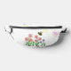 Une scène joyeuse d'un bourdon rayé planant sur des fleurs à la main vibrantes avec des feuilles verts frais et un sol terreux.