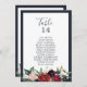Ces cartes de tableau de bord de la marine de jardin d'automne sont parfaites pour un mariage simple. Le design floral présente de superbes fleurs d'aquarelle rose, rouge, bleu marine et bordeaux, des fleurs et des feuilles verts disposés dans une couronne/bouquet d'automne animée. La carte s'imprime à l'avant et à l'arrière (double face).