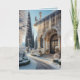 Un élégant jardin d'hiver de vacances avec une serre couverte de glace et de neige pour cette belle carte de vacances design d'art paysage.
