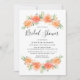 Des invitations à la douche nuptiale élégantes et élégantes avec des fleurs d'aquarelle dans les tons pêche et orange avec des feuilles verts luxuriants, agrémentées d'une police de calligraphie moderne. L'envers des invitations comporte un arrière - plan d'aquarelle de pêche. Personnalisez les invitations en ajoutant vos détails de douche.