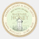 Le design central présente l'illustration d'une petite ruche de jardin sur un arrière - plan vert pâle. HONEY est écrit dans une police en or métallique ciselé. Le texte est imprimé en or. Bordure kraft texturée. Personnalisez avec votre nom, adresse et description du miel (brut, embouteillé à la main, source unique, etc.). Incluez également votre poids net miel. Conversions de poids net miel : 8oz (227g), 12oz (340g), 16oz (454g), 32oz (907g), 5lb (2,27kg).