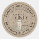 Arrière - plan kraft texturé simulé. Le design central présente une illustration d'une petite ruche de jardin. Personnalisez avec votre nom, adresse et description du miel (brut, embouteillé à la main, source unique, etc.). Incluez également votre poids net miel. Conversions de poids net miel : 8oz (227g), 12oz (340g), 16oz (454g), 32oz (907g), 5lb (2,27kg).