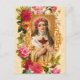Le Saint Rose de Lima est entouré d'un agencement de belles fleurs colorées et de travail de défilement orné. Un arrière - plan de brocart jaune complète le collage d'illustration élaboré.