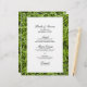 Le menu de Mariage de Jardin vert naturel peut être personnalisé avec les noms de la mariée et du marié, l'emplacement, la date et les détails du repas que vous pourrez servir à votre déjeuner de douche nuptiale d'été extérieur décontracté mais classe, dîner de réception de mariage ou brunch post mariage. Ce menu personnalisé de mariage comprend une photo de nature rapprochée d'une pelouse verte.