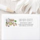 Les nouvelles racines retournent des étiquettes d'adresse avec une scène de jardinage, y compris une moelle à roue, une pelle et des plantes en pots avec un fond de clôture en bois. Annonces mobiles correspondant disponibles dans notre boutique.