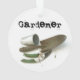 Une grande boîte d'arrosage grise place au milieu d'un jardin. Les plantes vertes l'entourant. À travers la boîte est un nom qui peut être customisé pour "votre" jardinier particulier. Au fond sont les mots : "à tout il y a une saison". Et ainsi elle est avec le jardinage. De l'autre côté est une photo des outils de jardinage ; une truelle, pruners, et un petit récipient (peut-être à l'eau ou probablement un petit plante était dans lui). Au dessus de cette photo est le mot : "JARDINIER".