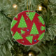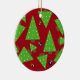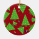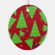Un design amusant avec des arbres de Noël fantaisistes avec des points de neige blanche. Des ornements rouges et bleus avec des motifs de flocon de neige sur un arrière - plan rouge.