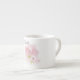 The cup features a delicate white ceramic design adorned with a floral illustration. The illustration consists of two blossoms on a single stem, set against a soft pink background. The word “Flower” is written above the illustration in a cursive, stylish font, adding to the cup’s simple and elegant aesthetic.