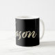 Une très belle tasse personnalisée / tasse à café / tasse à thé dans le Whitegold Lettering Look en noir pour Jason.