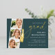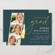 Celebrate their big milestone with these chic foil invitations that are perfect for a graduation celebration. Luxe design features "grad" and a graduation cap tassel illustration in elegant gold foil on a rich green background. Personalize with your party details aligned at the right in modern white lettering. Finish the design with three square photos of the graduate in a photo strip layout.