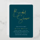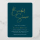 Invite guests to celebrate the bride to be with these modern and minimal bridal shower invitations. Simple design features "bridal shower" in gold foil handwritten script, with your event details beneath on a rich dark jasper green background.