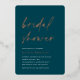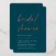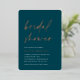 Invite guests to celebrate the bride to be with these modern and minimal bridal shower invitations with stunning rose gold foil accents. Simple design features "bridal shower" in casual handwritten script on a dark, moody jewel tone green background, with your event details aligned at the lower left in modern off white lettering.