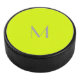 Hockey Puck avec fluorescence jaune couleur solide arrière - plan et police grise .Design simple et tendance par Alma Wad .Personnalisez-le avec votre monogramme maintenant .. _____________ Le jaune est associé au signe de Gemini dans l'astrologie occidentale. Vous pouvez tenir compte de cela lors du choix de votre couleur.