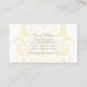 Simple avec élégance professionnelle décrit ce Carte de visite subtil Damask sophistiqué avec un arrière - plan damassé jaune clair fleuri . Cette carte de profil moderne et tendance est parfaite pour une boutique haut de gamme ou un domaine créatif comme le design d'intérieur et peut être facilement customisé avec vos détails d'affaires. Pour plus d'options de personnalisation, cliquez sur le bouton Customiser.