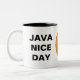Funny mug with a best wishes message to celebrate great coffee, and the 100% Arabica of Java.