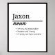 Introducing the "Jaxon, Boy Personalized Name Definition Poster," a custom piece perfect for any space. This poster features the name "Jaxon" with its meaning, origin, and definition elegantly displayed in a modern, stylish design. Ideal for nurseries, kids' rooms, or as a unique gift, this poster adds a personalized touch to your decor. Available in multiple sizes and finishes, it seamlessly blends with any interior style, celebrating the individuality of the name Jaxon.