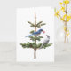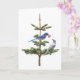A blue scrub jay passes a red and white peppermint candy to a white jay on a fir tree. Send your "Season's Greetings" with this bird holiday card.